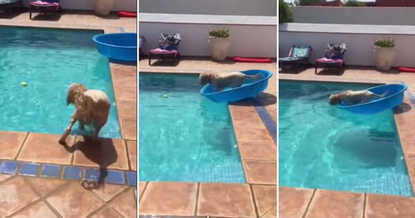 На почетокот Роузи се обидува да си го земе топчето кое се наоѓа во базенот, но не успева без да се намокри. Користејќи пластично „бротче“, умното куче ќе успее да стигне до посакуваната играчка.