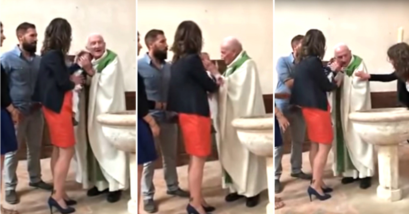 Агресивен свештеник наиде на најостри критики затоа што се осмели да му удри шлаканица на расплакано бебенце за време на крштевање.