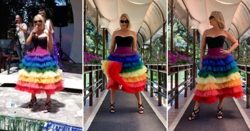 Тамара носеше креација со боите на ЛГБТ знамето.