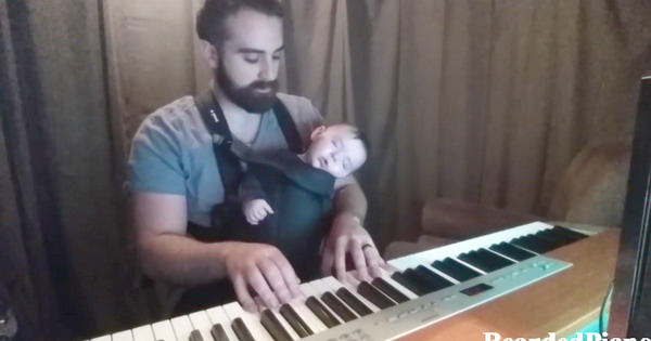 Во виралното видео, тој започнува да свири приспивна песна, а неговото малечко веднаш започнува да се проѕева и само по неколку секунди целосно му се предава на сонот.