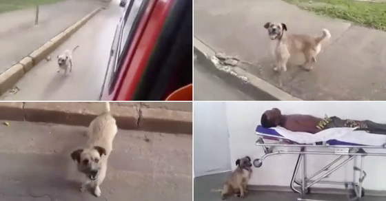 Видеото од мало куче коешто неуморно трча по амбулантното возило кое го пренесува неговиот сопственик до болница ќе ве растажи, но и ќе ви го стопли срцето.