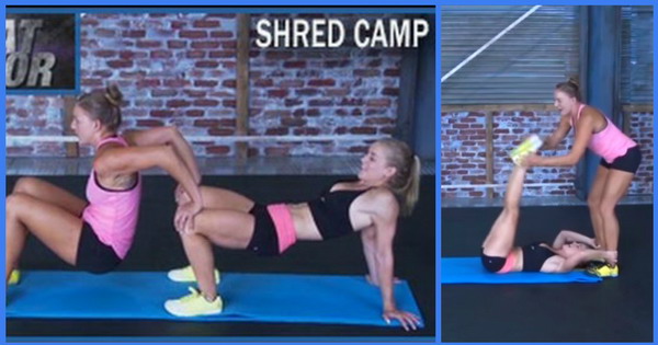 Две девојки покажуваат дека за само 15 минути можете да го забрзате срцето, да се препотите, да стопите масти и да ги зацврстите мускулите. Најдоброто е што вежбите се за партнери, а тоа гарантира забавен тренинг.