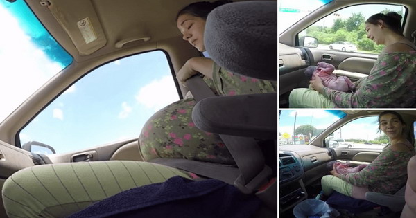 Жена се породи во автомобил на пат кон болница, а нејзиниот сопруг го сними неповторливиот момент. Во видеото е покажано целото породување, кое трае доста кратко. Веднаш откако ќе започнат силните породилни болки, на жената ѝ пука водењакот и бебето започнува да излегува.