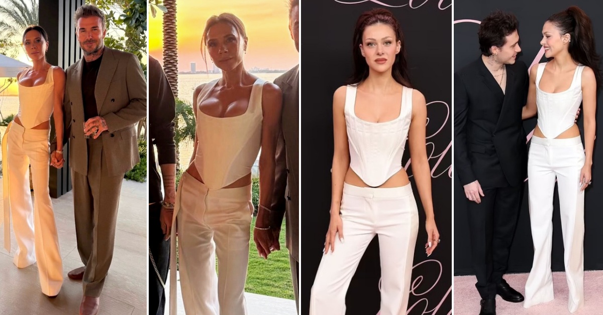 Истиот стајлинг со цена од 1.370 евра пред неполна година го носеше нејзината снаа Никола Пелц на премиерата на „Lola“. Облеката ѝ била подарок токму од Викторија.