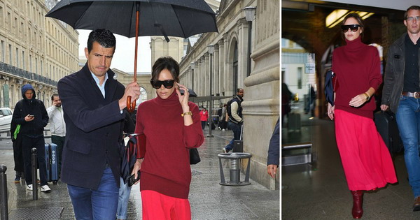 Бекам беше фотографирана во истата комбинација во Лондон, непосредно пред да се упати во Париз.