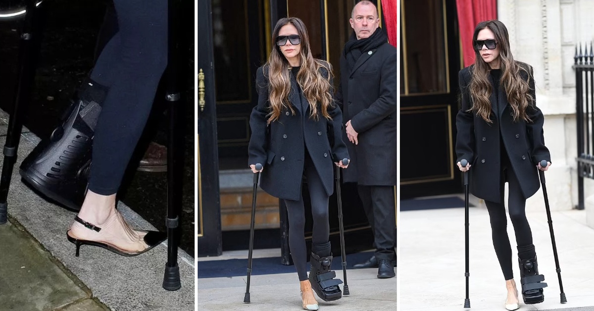 Сопругата на Дејвид Бекам неколкупати беше фотографирана во Париз додека излегуваше од хотелот со помош на патерици.