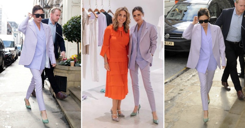 За промотивниот настан во Лондон, Бекам избра виолетов костум од нејзината колекција пролет/лето 2018 и чевли во ментол нијанса.