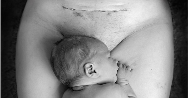 Црно-бела фотографија на која бебенце спие до лузната од царскиот рез на мајка си забрзано го обиколува светот.