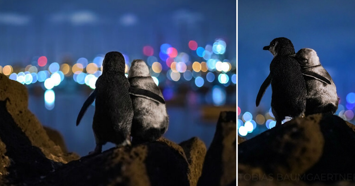 „Во вакви времиња најсреќни се оние кои можат да бидат со личноста која ја сакаат најмногу. Овие пингвини од бајките беа застанати на карпа со поглед кон хоризонтот во Мелбурн. Стоеја таму со часови, гледајќи ги блескавите светла и океанот“ – пишува Тобијас, кој поминал 3 ноќи со пингвините за да ја направи оваа фотографија.