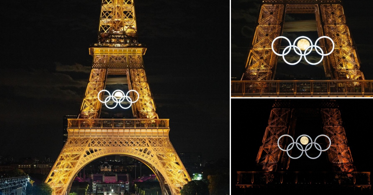 На нив, Месечината свети зад симболот на спортскиот настан, олимписките прстени, кои во моментов се поставени на Ајфеловата кула во чест на претстојното случување. Моментот во совршениот тајминг го овековечи фотографот Грег Мартин.