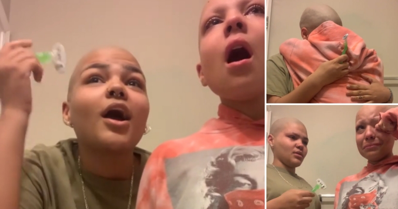 Вирално видео: Девојка си ги избричи главата и веѓите за да ја поддржи сестра си која се бори со рак и ја изгубила косата