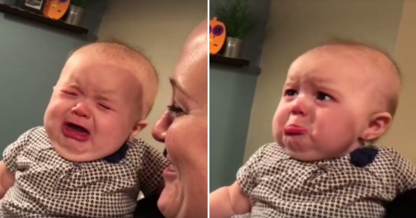 Слатко бебенце започнува да плаче секојпат кога неговите родители се бакнуваат в уста, а се смирува веднаш откако тие ќе го бакнат на образот.