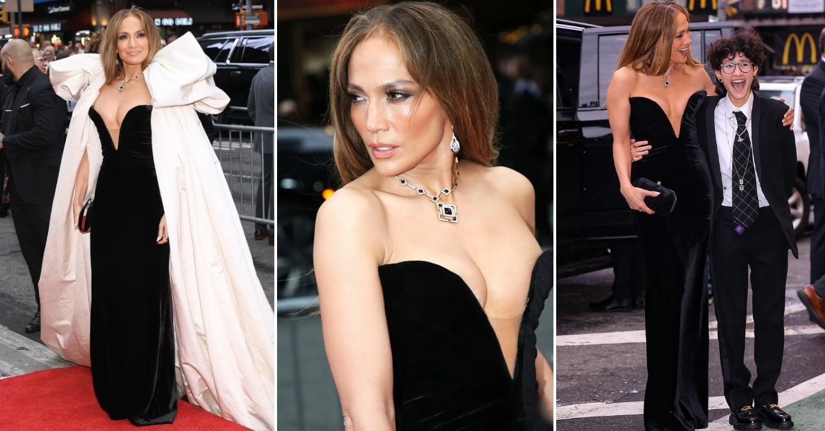 Вистинска дива: Џенифер Лопез атрактивна во кадифен фустан и драматична наметка покрај ќерката на премиера