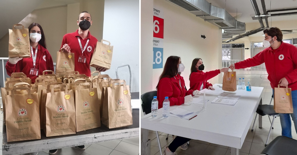 Виталиа со поддршка за волонтерите од Црвен Крст со пакет производи за силен имунитет.