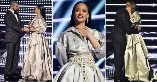 При врачувањето на наградата, Дрејк нежно ја бакна Ријана и доби громогласен аплауз и овации од присутните.