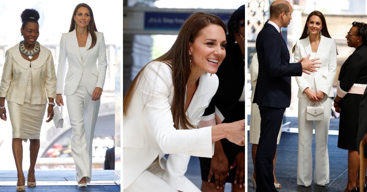 За оваа пригода, 40-годишната претставничка на британското кралско семејство избра комплетно бел стајлинг. Таа носеше костум од Александар Меквин и чантичка од Mulberry.