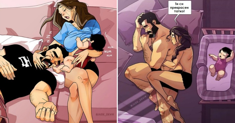 Креативниот артист од Тел Авив се прослави со забавните илустрации во кои прикажува ситуации од секојдневието со саканата, а сега и со малата ќеркичка.