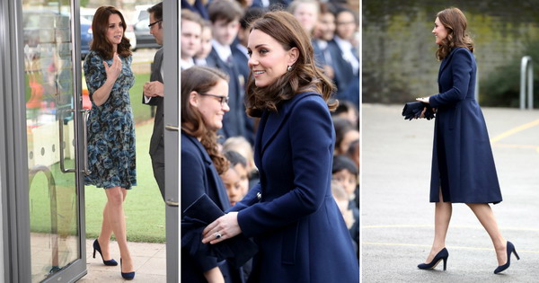 За првата појава во јавност во новата година, Кетрин избра сина комбинација, која вклучуваше цветен фустан и палто од брендот Hobbs.
