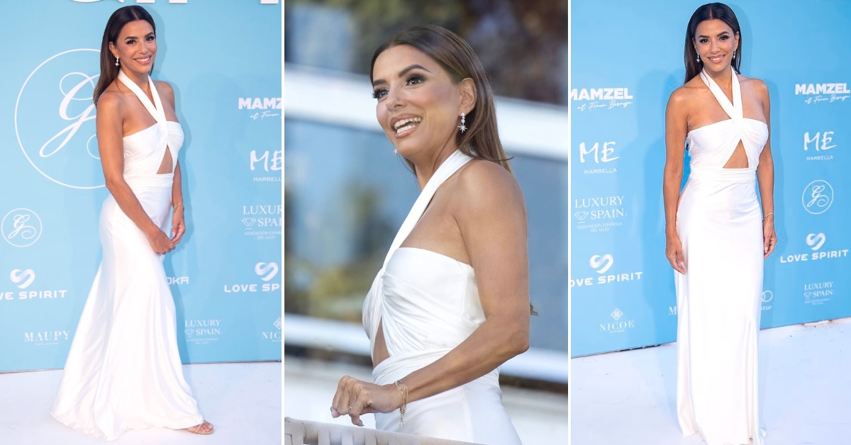 На синоќешната гала на Фондацијата „Global Gift“, 50-годишната актерка заводливо позираше во бел фустан од Victoria Colección. Креацијата со исечок на стомакот совршено ја истакна нејзината фигура.