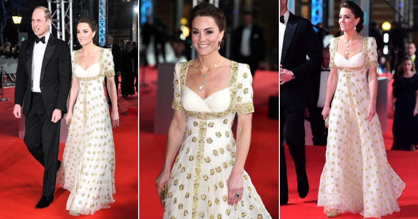 На манифестацијата која се одржува вечерва во Лондон, 37-годишната припадничка на британското кралско семејство шармираше во бело-златен долг фустан од Александар Меквин. Во својот стајлинг, Кетрин вклучи и салонки од Џими Чу и накит од Van Cleef & Arpels.
