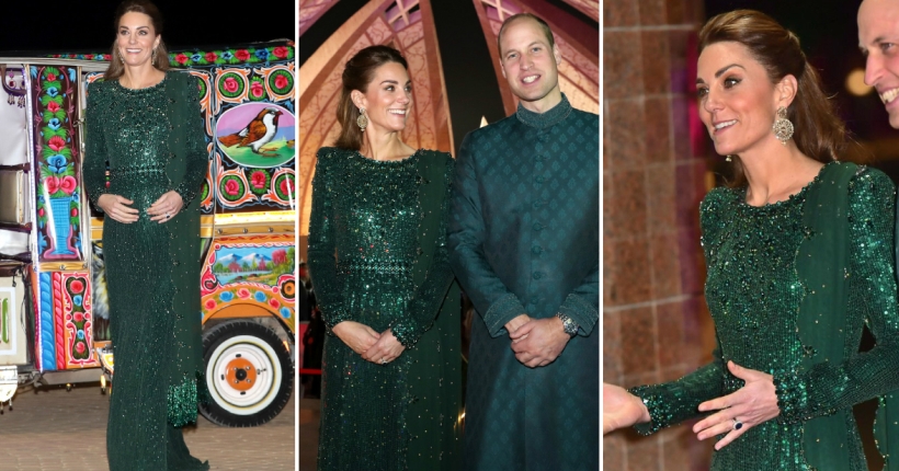 37-годишната војвотка од Кембриџ носеше зелена креација од Џени Пекам, а Вилијам беше облечен во ускладена комбинација инспирирана од традиционалната пакистанска облека.