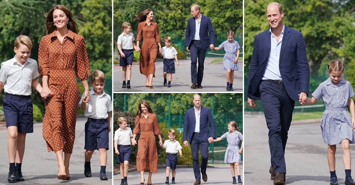 Кралското семејство беше фотографирано насмеано додека на првиот училиштен ден се упатуваше кон „Lambrook School“ во Беркшир. 40-годишната Војвотка за раце ги држеше принцовите Џорџ и Луи, кои носеа складни униформи, а Вилијам чекореше за рака со принцезата Шарлот.