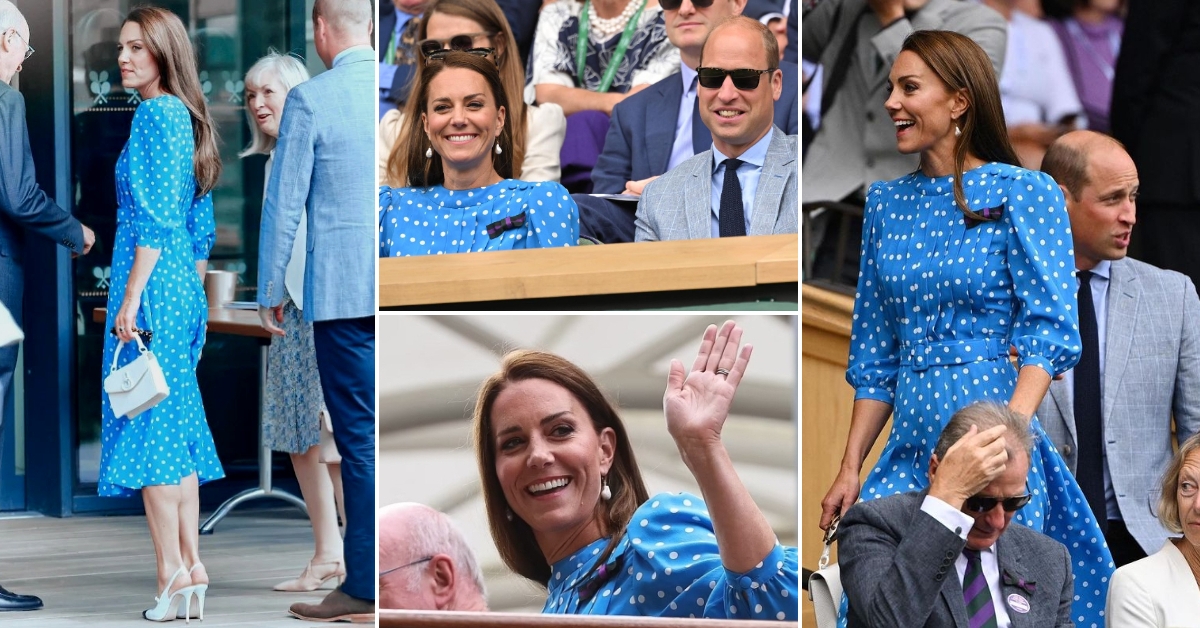40-годишната припадничка на британското кралско семејство седеше покрај принцот Вилијам на натпреварот помеѓу Новак Ѓоковиќ и Јаник Синер. Нејзиниот стилски избор беше син фустан со точкест принт од Алесандра Рич.