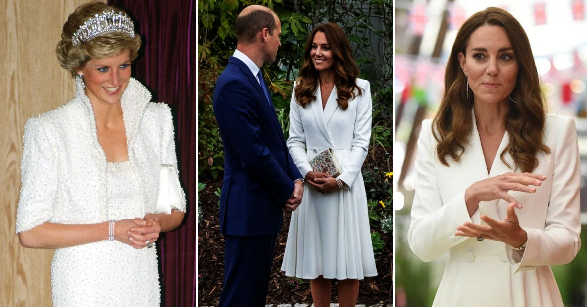 Војвотката Кетрин во бел палто-фустан и со бисерна белегзија на принцезата Дијана на самитот на Г7