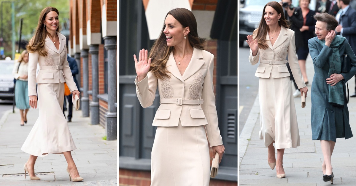За оваа пригода, војвотката од Кембриџ шармираше во елегантен женски костум од Self Portrait.