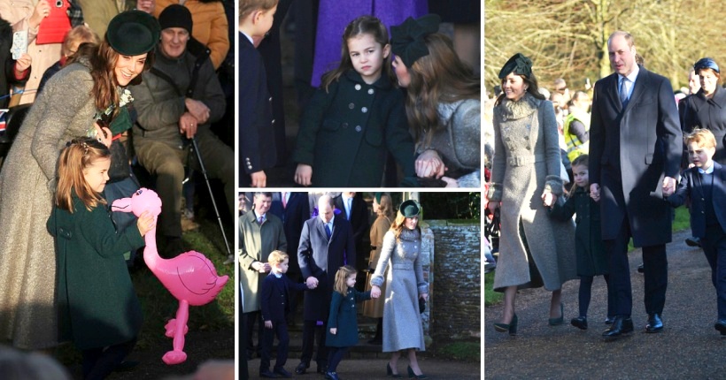 Војвотката Кетрин во елегантно палто покрај принцот Вилијам и двете деца на божиќна миса