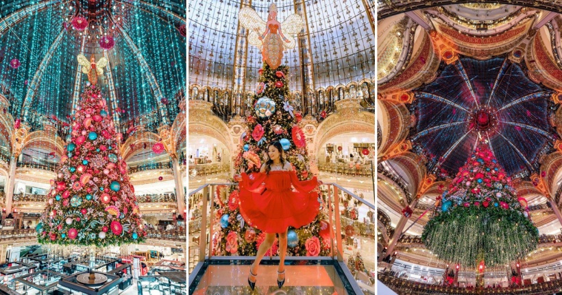Луксузниот трговски центар Galeries Lafayette привлекува зголемен број на посетители во празничната сезона со грандиозна елка.