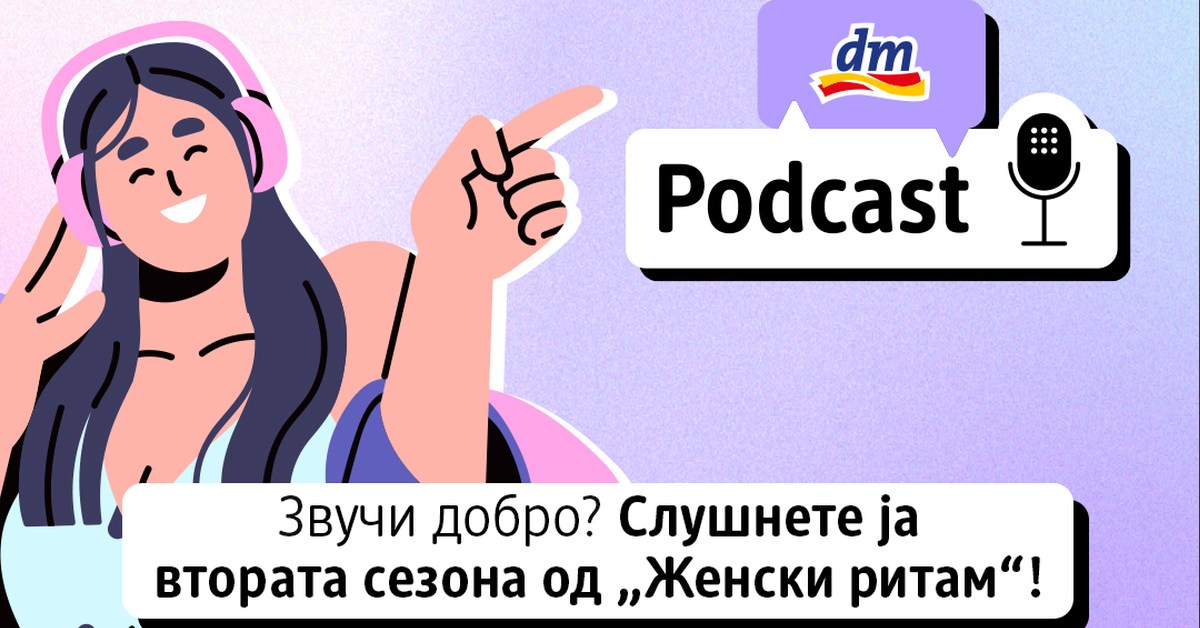 Погледнете ги епизодите од втората сезона на поткастот „Женски ритам“, кои се достапни само на YouTube каналот на dm drogerie markt Македонија.