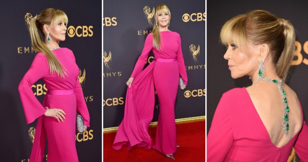 Џејн Фонда изненади со својот стајлинг на црвениот тепих на доделувањето на Еми 2017. 79-годишната актерка изгледаше децении помлада во розов фустан и фризура со долго опавче и шишки.