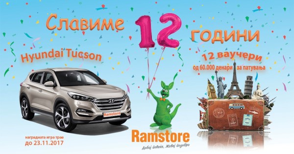 Со секоја сметка над 1000 денари направена во Рамсторе Маркетите можете да очекувате дека ќе станете добитник на Hyundai Tucson или на еден од 12те ваучери за патување од Туристичката Агенција Савана во вредност од 60.000 денари.
