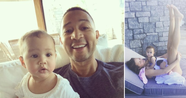 На нив, талентираниот музичар позира со својата сопруга Криси Тиген и 8-месечната ќеркичка Луна. На сите фотографии Леџенд е со широка насмевка на лицето.