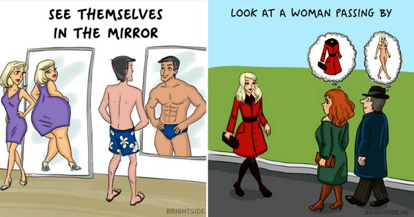 Таквите разлики меѓу мажите и жените, кои константно се во сржта на многу шеги и закачки, се прикажани преку забавни илустрации.