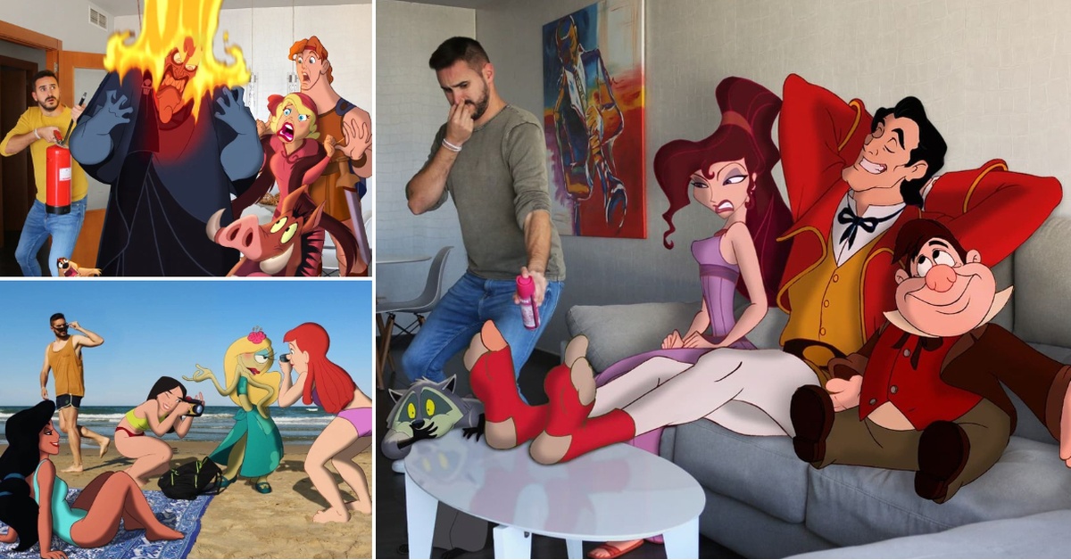 Креативниот артист со помош на Фотошоп вметнува Дизни ликови во своите фотографии и се прикажува во друштво на Херкулес, Ариел, Снежана, Тарзан и многу други.