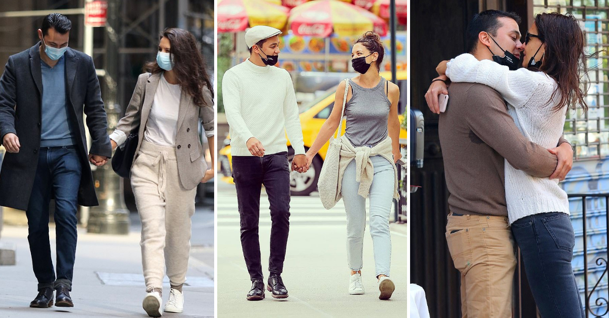 41-годишната актерка беше фотографирана од папараците за време на прошетка со 33-годишниот готвач во Њујорк. Поранешната сопруга на Том Круз изгледа заљубено и среќно покрај новиот дечко. Таа беше облечена во комфорна есенска модна комбинација со сако и патики.