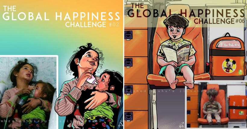 Талентираниот артист од Бангладеш ја подигнува свеста кај луѓето за последиците од војната и поттикнува на размислување преку неговите илустрации. Мишу претвора трогателни фотографии во среќни илустрации за да покаже дека сè би можело да биде поинаку.