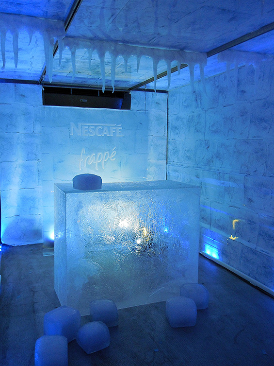 На површина од 30m2, поставен во подвижен „замрзнат“ камион, првиот Ајс Бар на Nestlé на посетителите ќе им понуди да избегаат од жешкиот градски асфалт, да заборават на тропските температури и да уживаат во идеалниот леден вкус на Nescafé Frappé, подготвено од професионалните Nescafé Frappé бармени.
