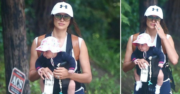31-годишната манекенка беше видена на прошетка со слаткото девојче кое го носеше на себе во кенгур во Лос Анџелес.