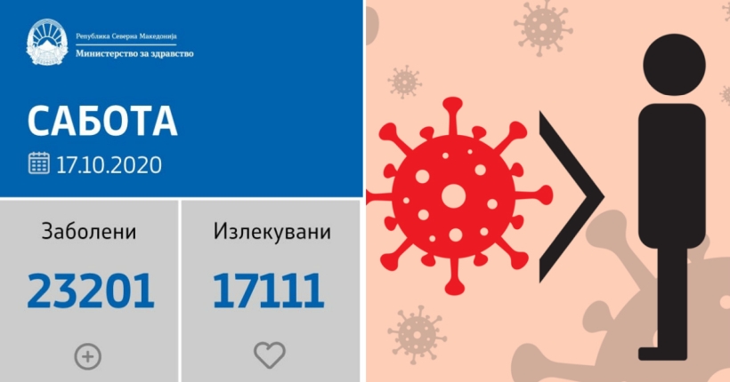 Вкупната бројка на ковид дијагностицирани во нашата земја од почетокот на епидемијата изнесува 23.201, бројката на оздравени пациенти е 17.111, на починати е 824, а во моментов бројот на активни случаи во земјата изнесува 5.266.