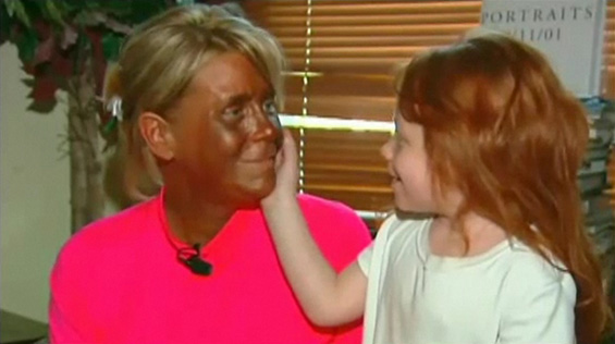 Патриша, која цел живот го одржува својот екстремно темен тен со солариум, ги отфрла обвинувањата и тврди дека нејзината ќерка ги добила изгорениците додека си играла надвор на сонце.