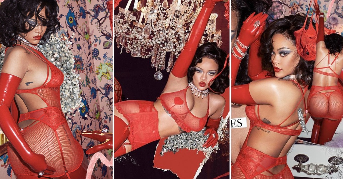 32-годишната пејачка и дизајнерка изгледа секси и заводливо во црвена долна облека од сопствената линија „Savage X Fenty“.