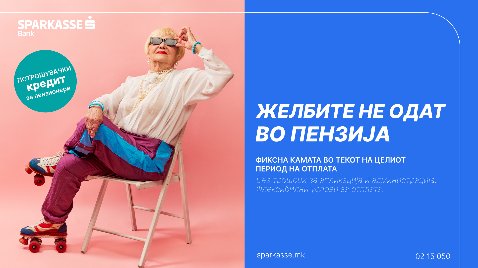 Скопје, 27.4.2026 – Под слоганот „Желбите не одат во пензија“, Шпаркасе Банка воведува промотивни услови за потрошувачки кредит наменет за пензионери, со цел да обезбеди дополнителна финансиска поддршка и поголема сигурност во секојдневното планирање.