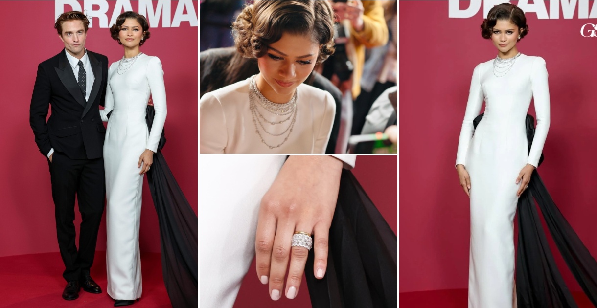 Додека се шират гласините дека направила тајна свадба со Том Холанд, 29-годишната актерка продолжува да експериментира со „невестинска мода“. На париската премиера на нејзиниот филм „The Drama“, филмската ѕвезда се појави во спектакуларна бела креација со голема црна панделка во задниот дел од Луј Витон која совршено ѝ ја истакна тенката фигура.