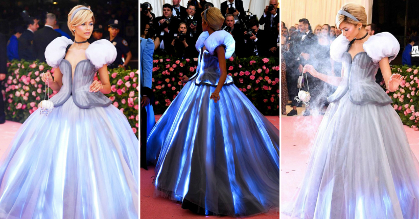 За комплетен изглед на Пепелашка, Зендаја носеше минијатурна чантичка во форма на кочија и стаклени чевлички, од кои едната ја „изгуби“ пред да зачекори по скалите.