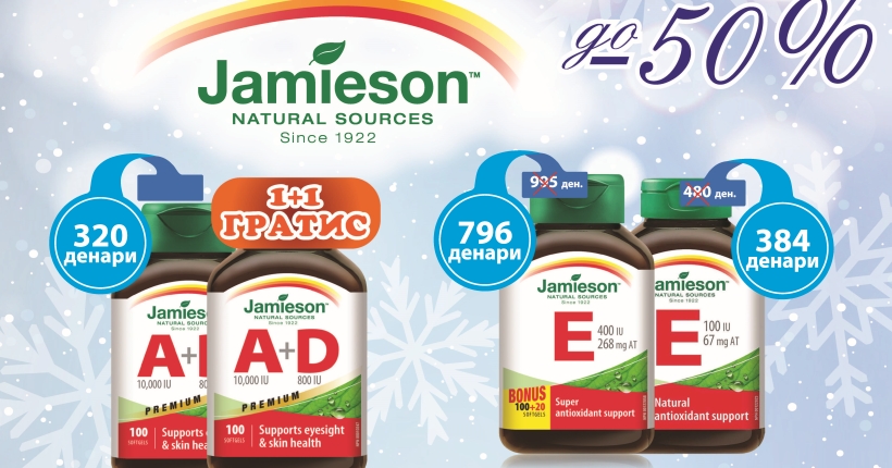 Оваа зима продолжуваме со промоција и намелени цени на дел од прозводите на Jamieson. Посете ја најблиската Еурофарм аптека и побарајте Jamieson производи, наменети за целото семејство. Уживајте во зимата подготвени и со силен имунитет!