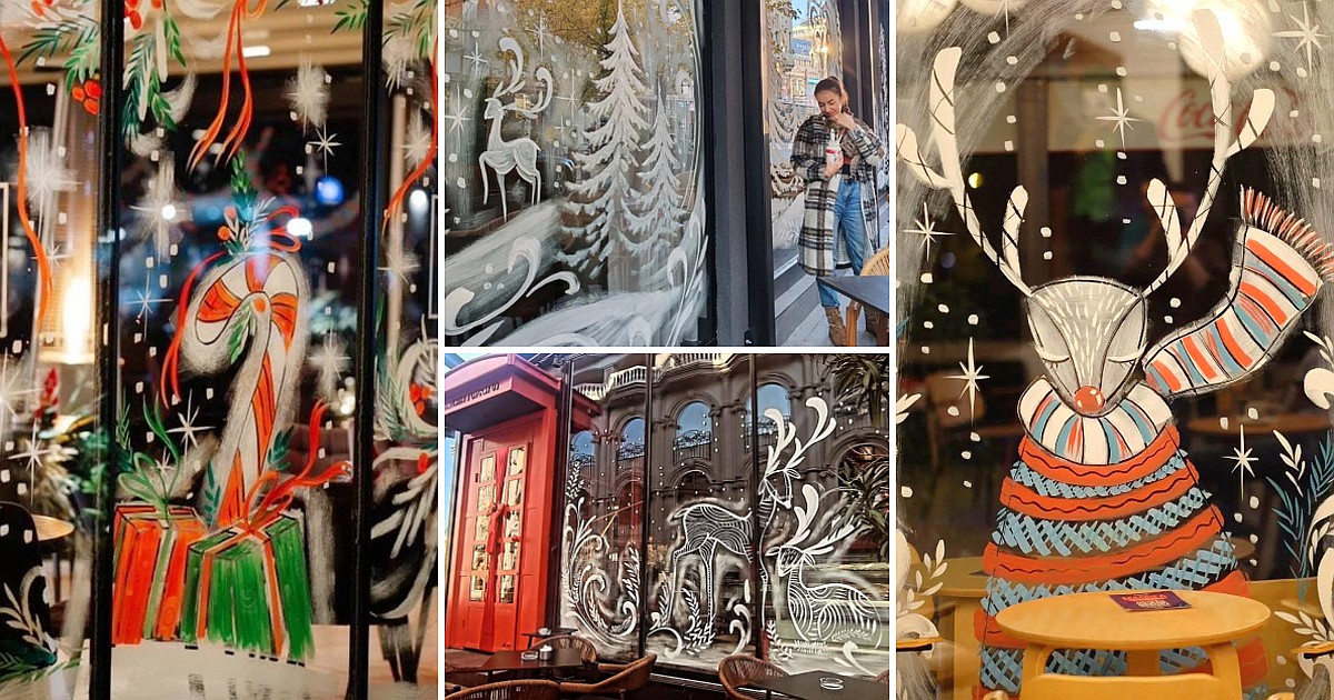 Зимска уметност на излози низ Скопје: Данче Ефтимова создава новогодишна магија на стакло
