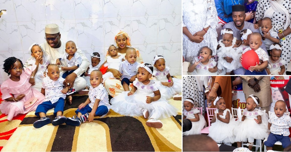 Единствената деветоротка во светот ги помина првите 19 месеци од својот живот во болница во Мароко и ова е првиот роденден кој го слави дома. На фотографиите од прославата, петте девојчиња се облечени во бели фустанчиња, додека четирите момчиња носеа кошули и кратки панталони.